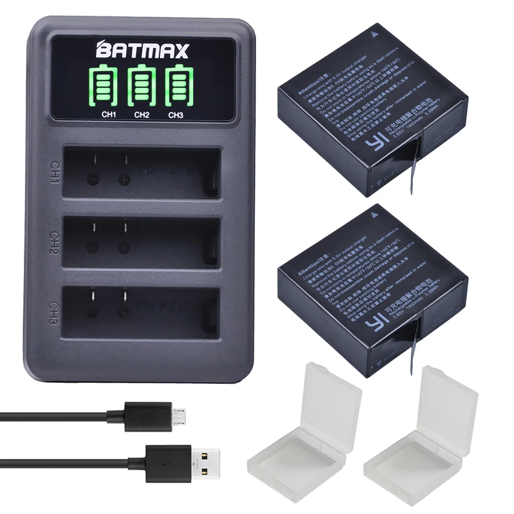 For 3Pcs 3.85v YI LITE Xiaomi Yi 4K II 1400mAh Battery + LCD Dual USB Charger for XiaoYi 4K 2 Action Camera Accessories