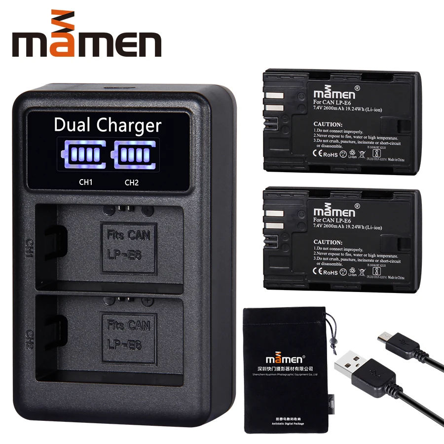 Big Promo 2600mAh LP E6 LP-E6 LPE6 Digital Camera Battery +USB LCD Dual Charger for Canon Mark II Mark III 6D