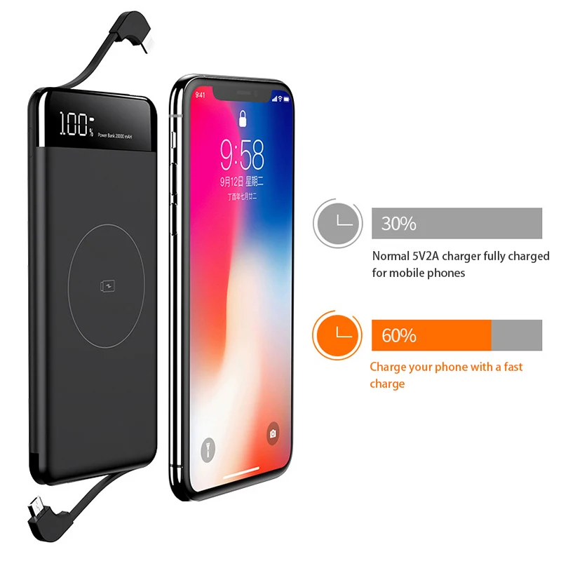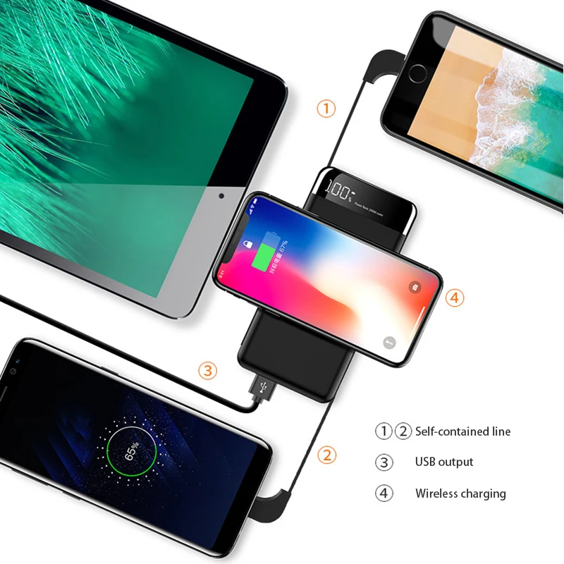20000 mAh Portable Power Bank Fast Charger Powerbank Built in 3 Cables External Battery Charger For iPhone Xiaomi Mi Poverbank