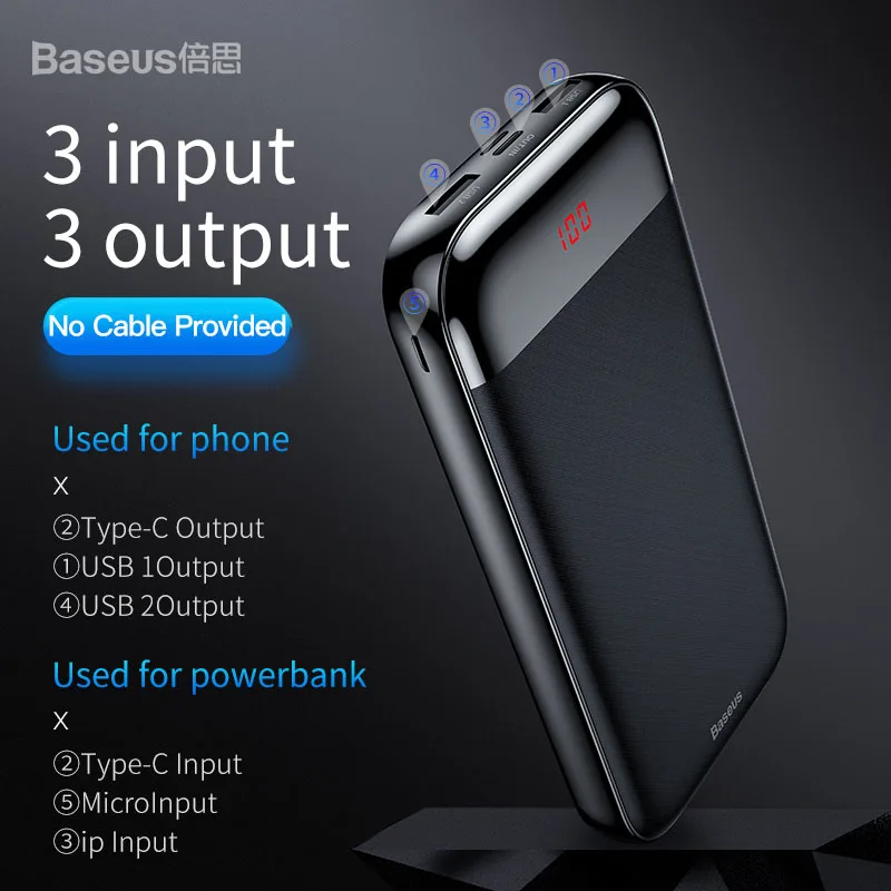 Baseus 20000mAh Power Bank For Xiaomi iPhone 11 Pro Samsung Portable Charger 20000 mAh USB C PD Fast External Battery Powerbank
