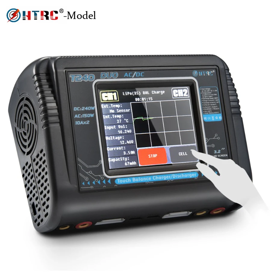Big Promo HTRC Touch Screen AC 150W DC 240W Dual Channel RC Balance Lipo battery Charger LiHV LiFe Lilon NiCd