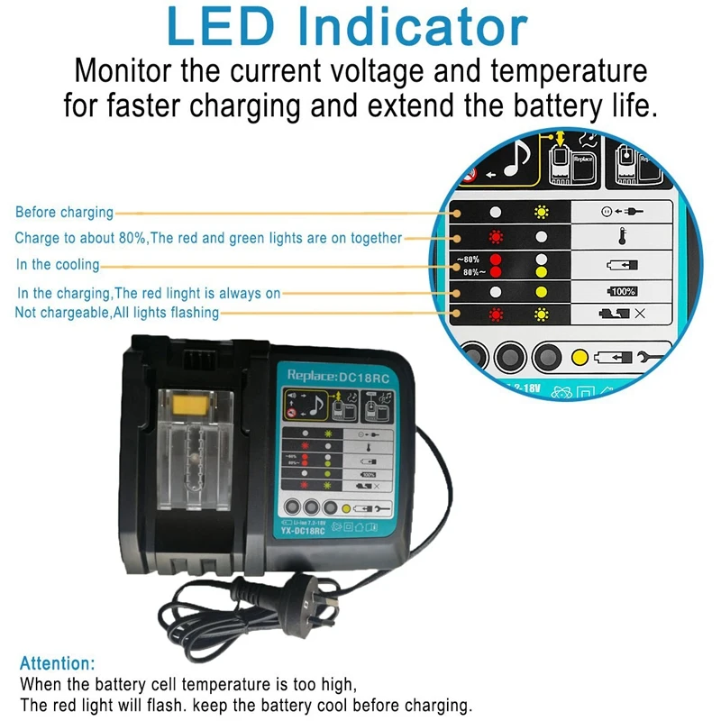 Best Deal Li-Ion Battery Charger 3A Charging Current For Makita 14.4V 18V Bl1830 Bl1430 Dc18Rc Dc18Ra Power T
