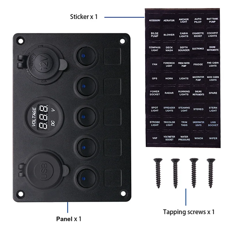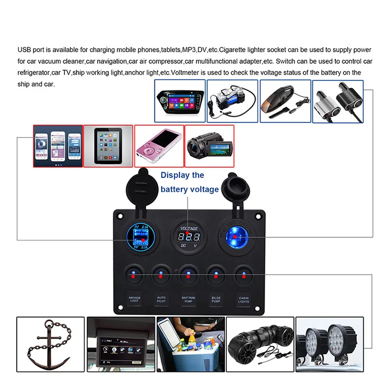 Best Product 5 Gang ON-OFF Toggle Car Panel Switch Dual USB Socket Charger 4.2A LED Voltmeter 12V Power Socket f