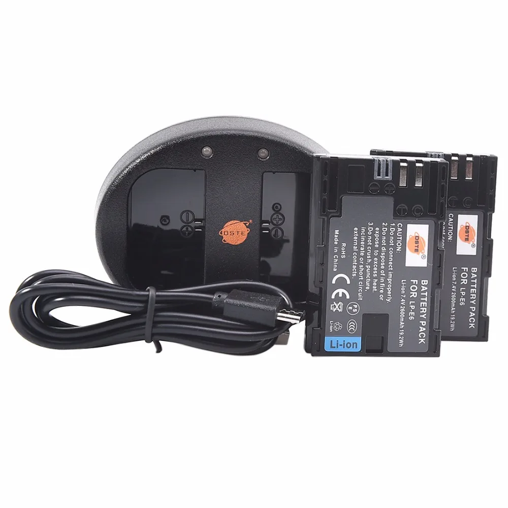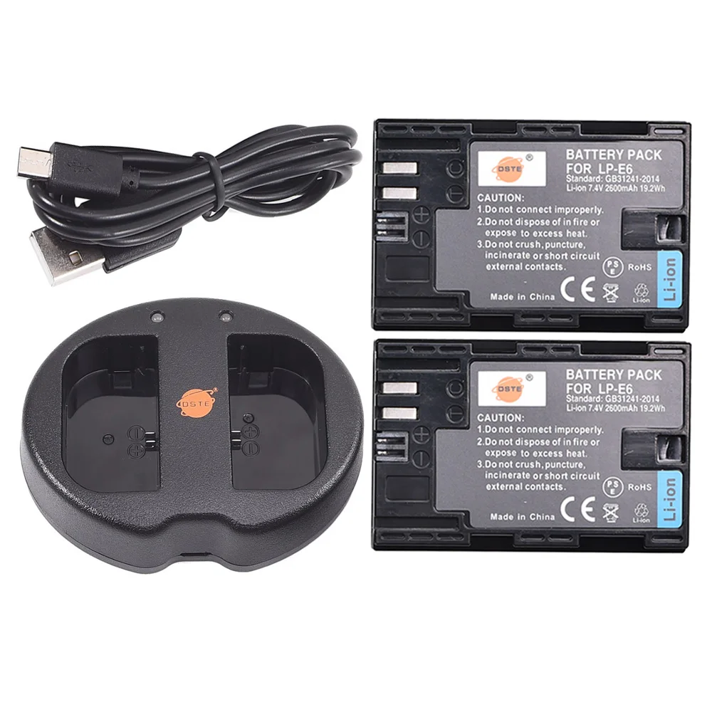Big Promo DSTE 2PCS LP-E6 LP-E6N lp e6n Battery with Dual USB Charger for Canon EOS 5DSR5D Mark II5D Mark III