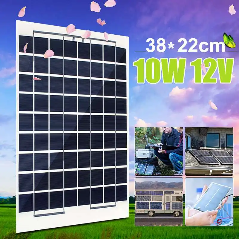 New15W Solar Panel 12V Polycrystalline Solar Panel with Line Clip 4X Suction Cups for Outdoor Camping Emergency Light Waterproof