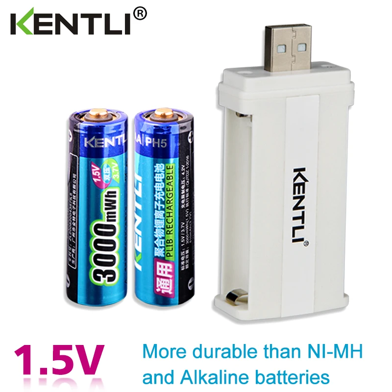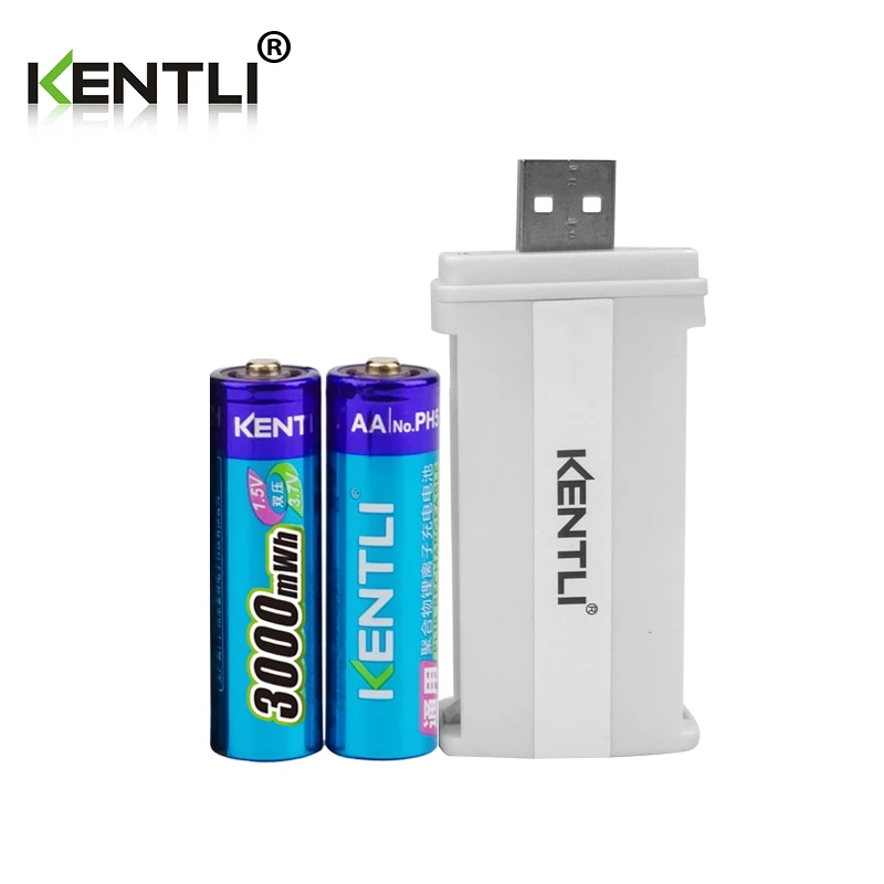 KENTLI 4pcs low self discharge 1.5v 3000mWh AA rechargeable Li-polymer li-ion polymer lithium battery +1 USB smart Charger