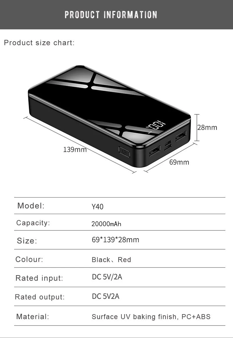 Buy Now 20000mah Power Bank External Battery 18650 PoverBank 2 USB LED Powerbank Type-c Portable Mobile pho