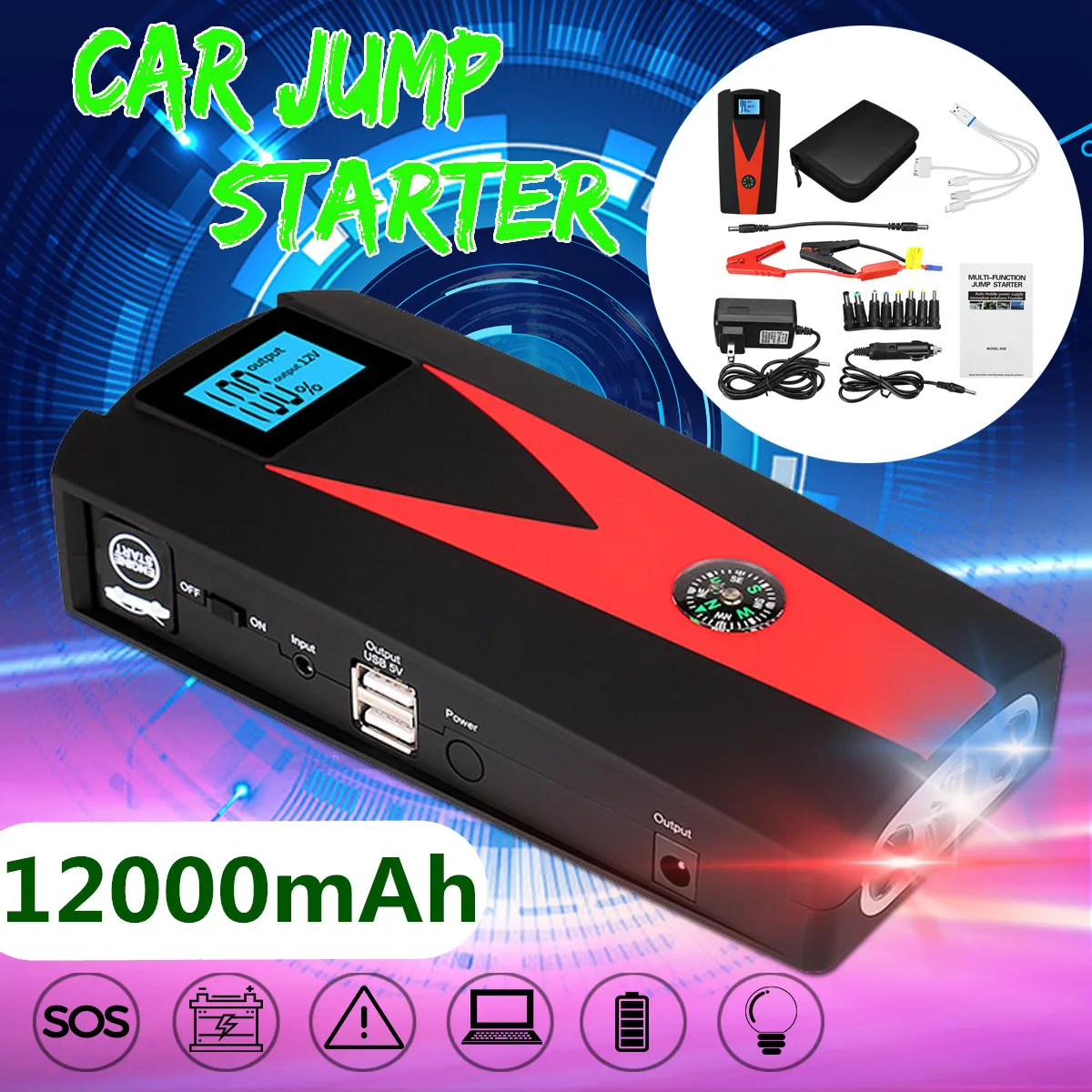 Buy Now Car Jump Starter 12V 600A LED 2USB Power Bank Portable Car Battery Booster Charger Starting Device