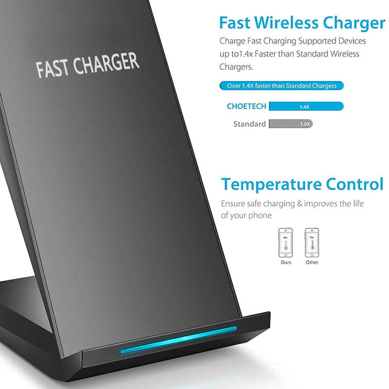 Big Promo CinkeyPro QI Wireless Charger Stand 2-Coils Fast Charging Quick Charge 2.0 for iPhone 8 10 X Samsun