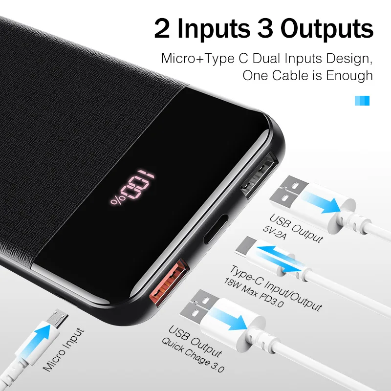 Hot Sale YKZ QC 3.0 LED Power Bank 10000mAh Portable external mobile battery powerbank PD Fast Charger Pover
