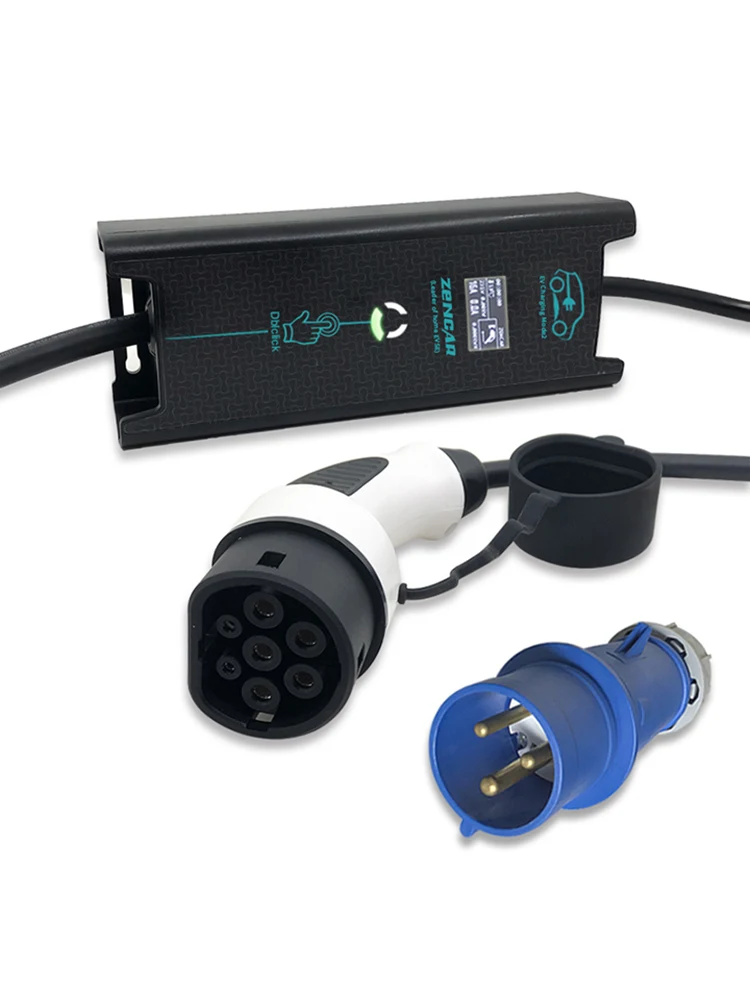 Hot Sale Ev charging adjustable evse 10A 16A 20A 24A 32A blue cee plug IEC62196 Type 2 for Electric Car Char